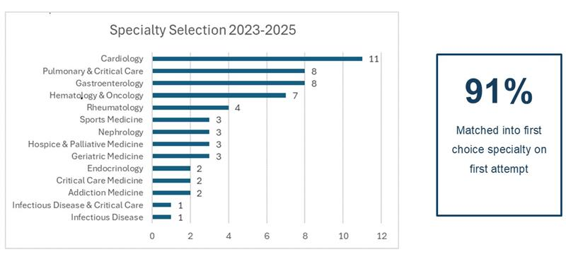 Our residency program will prepare you as a practicing internist, or to pursue the subspecialty field of your choice, at AHN or beyond. Below you will see the opportunities our residents have within AHN, and what they have gone onto after graduating.